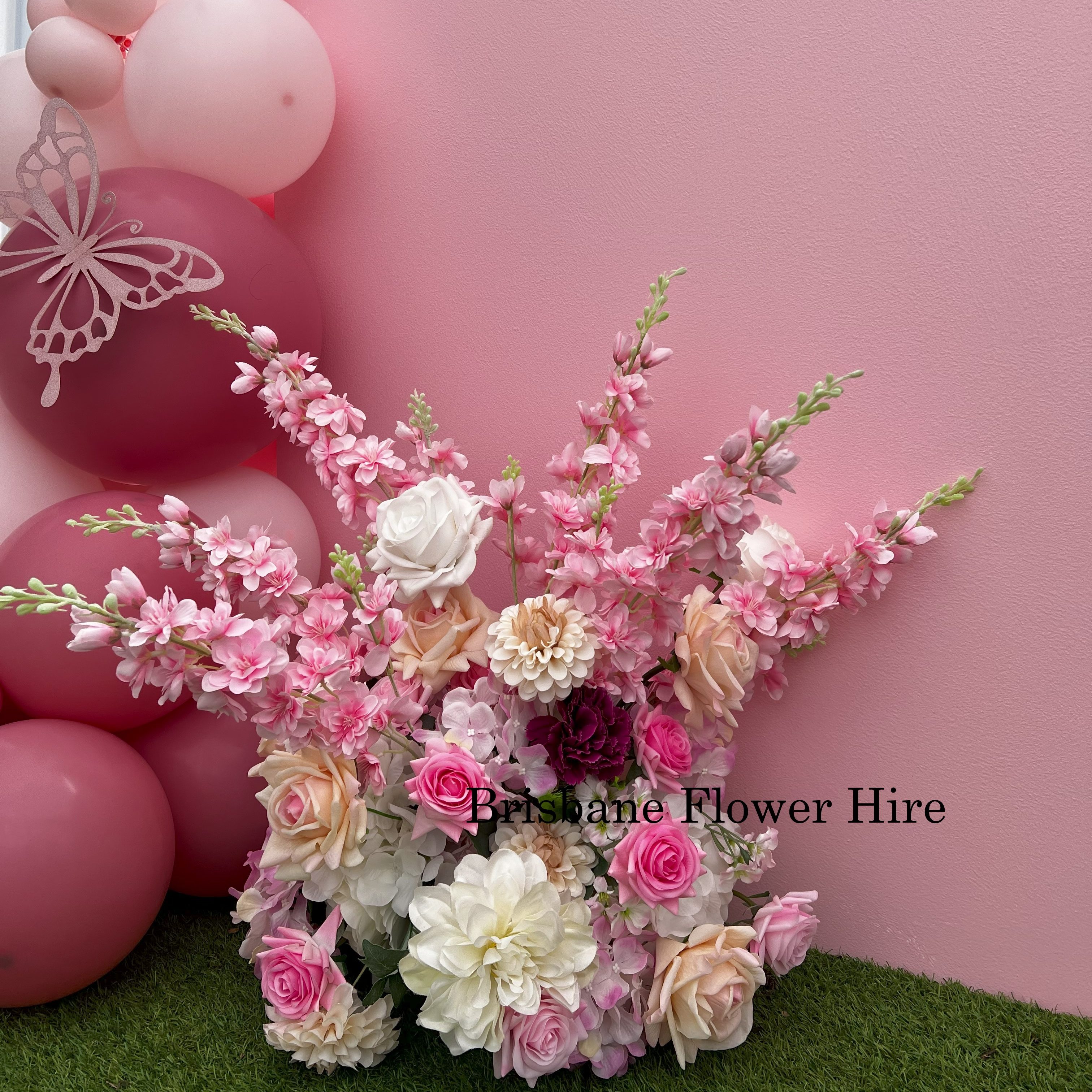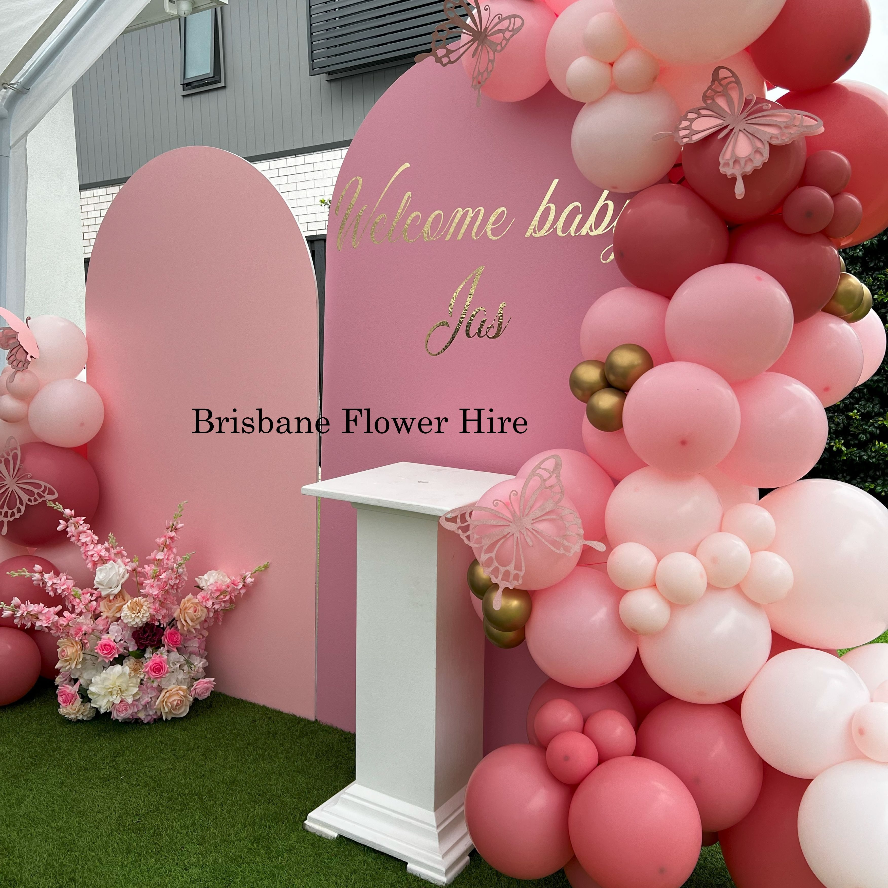 Customise your flowers and balloon garland backdrop.